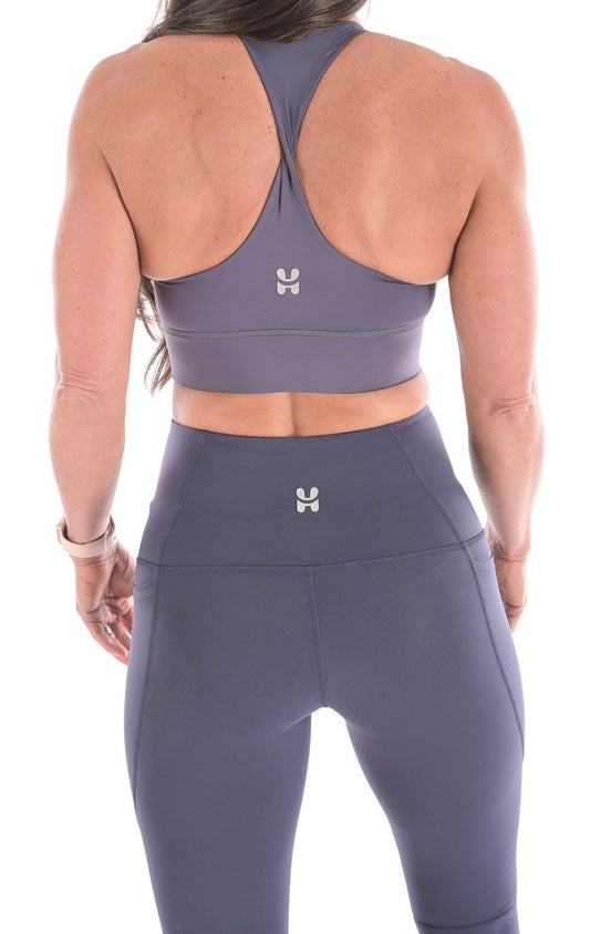 Twist Back Sports Bra - Smoky Blue