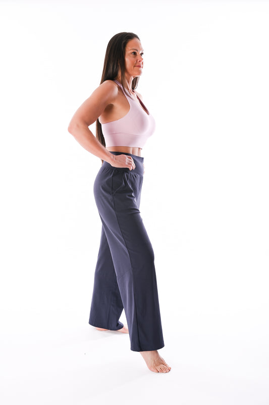 Wide Leg Yoga Pants - Navy